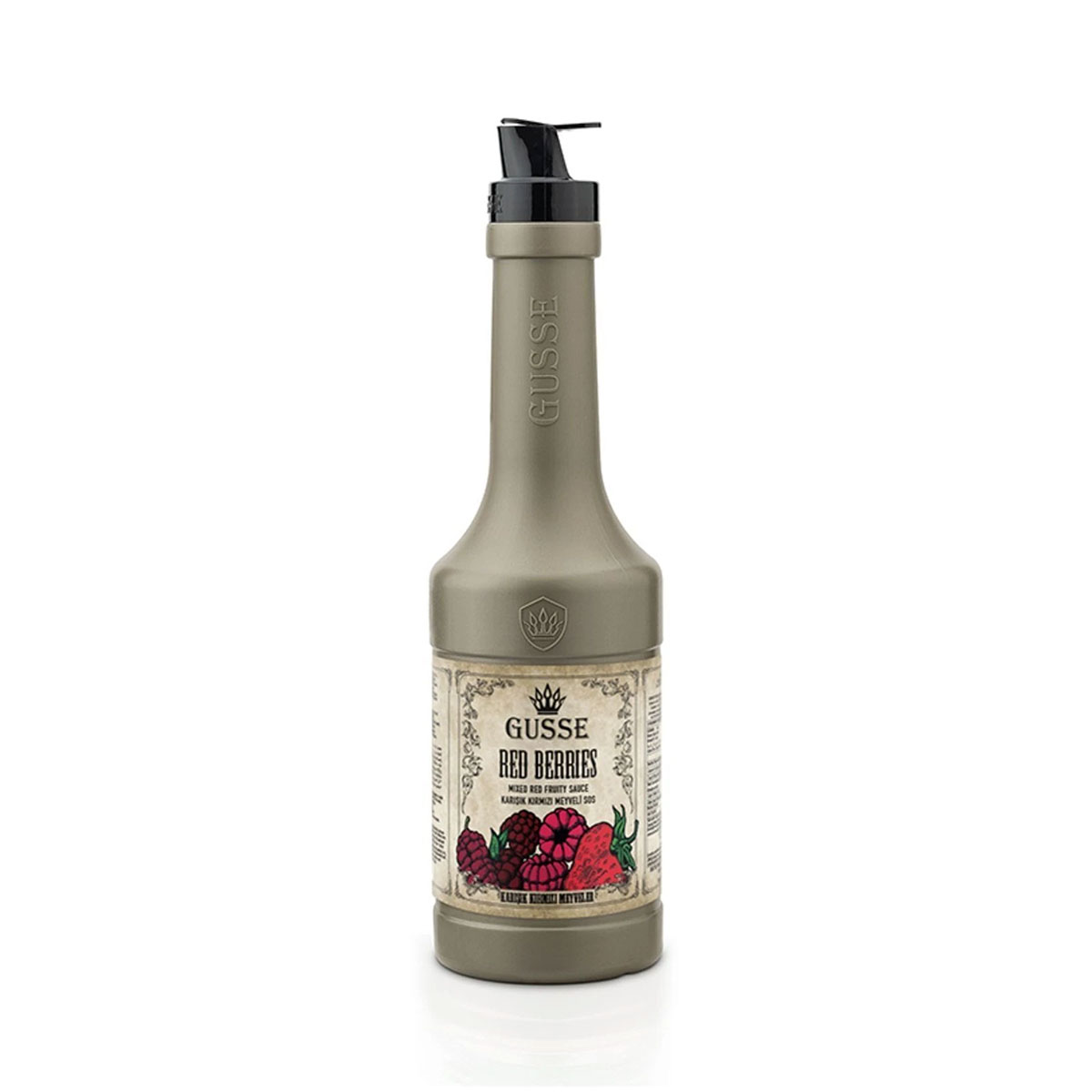 GUSSE Kırmızı Meyveler Aromalı Sos 1.1 Kg, içecek ve tatlılarınıza çilek, frambuaz ve yaban mersini gibi kırmızı meyvelerin dengeli birleşimiyle yoğun ve aromatik bir lezzet katmak için geliştirilmiştir. Profesyonel mutfaklar ve ev kullanımı için ideal bir üründür.