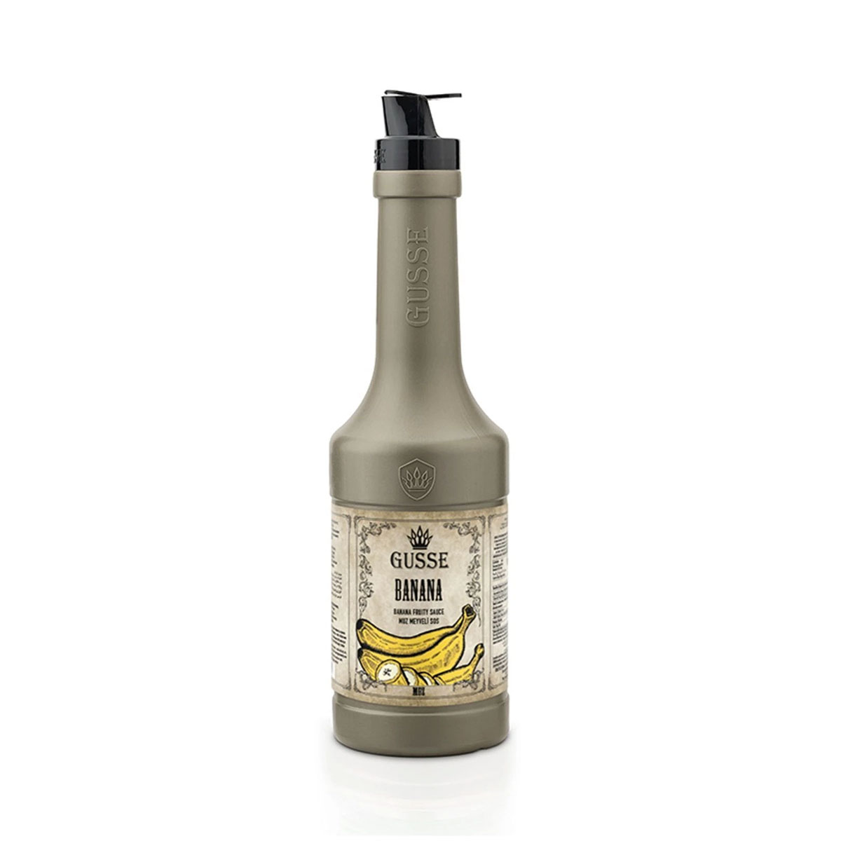 GUSSE Muz Aromalı Meyve Sosu 1.1 Kg, içecek ve tatlılarınıza muzun tatlı, yumuşak ve kremsi karakterini yansıtan yoğun bir meyve lezzeti katmak için geliştirilmiştir. Profesyonel mutfaklar ve ev kullanımı için ideal bir üründür.